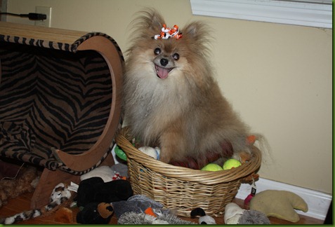 For this lesson I will let Maggie, my sister, demonstrate the proper way to Pawtect Your Stuffies. She has it down to an art…BTW, don’t let her little bow fool you, this one is all fur and teeth!